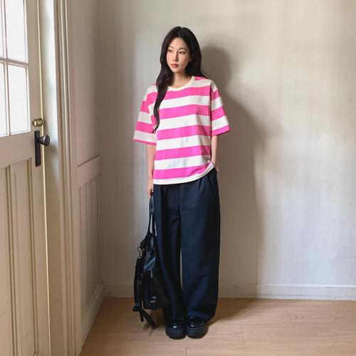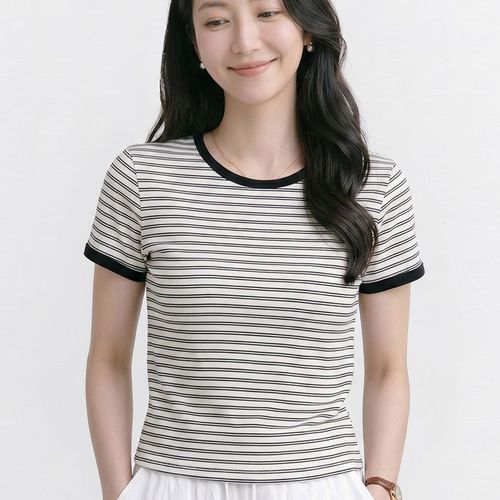 반팔티셔츠 여름 세미크롭 스트라이프 여자 슬림핏 WFKBWW7