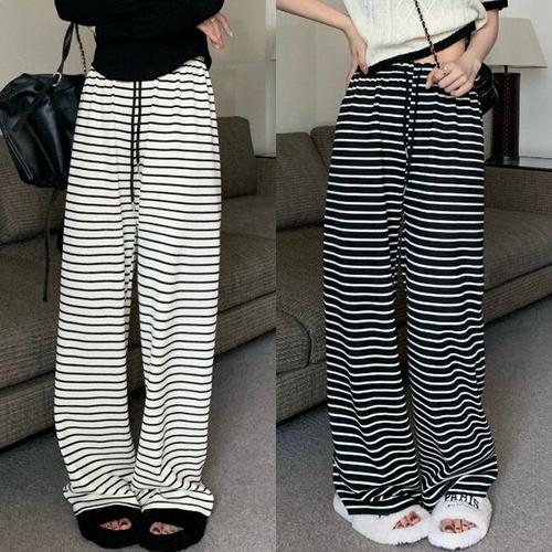 Zoovit 여성 캐주얼 스트라이프 밴딩 팬츠 일상 루즈핏 여름 와이드 팬츠