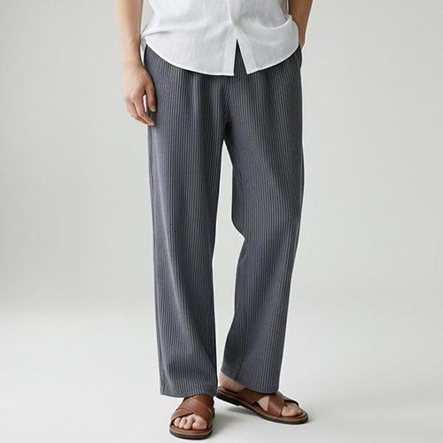 남성 스트라이프 일자핏 스트레이트 밴딩 팬츠