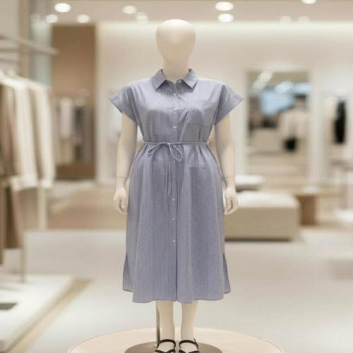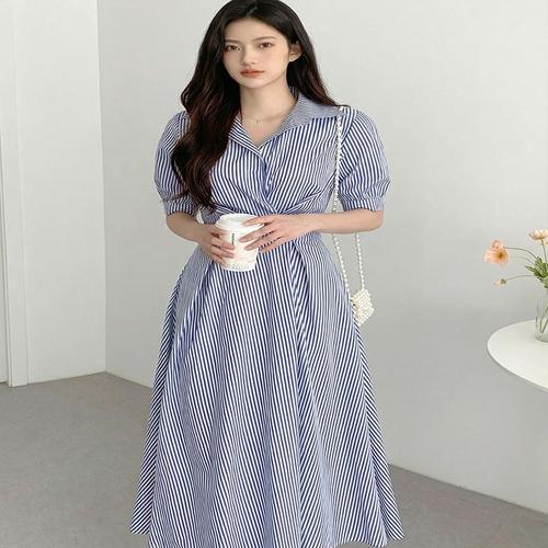 TIMEPURE 프렌치 스트라이프 셔츠 원피스 빅사이즈 슬림핏 롱드레스