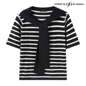 숄 세트 스트라이프 배색 라운드 반팔 니트 (NQ2KT002L0)