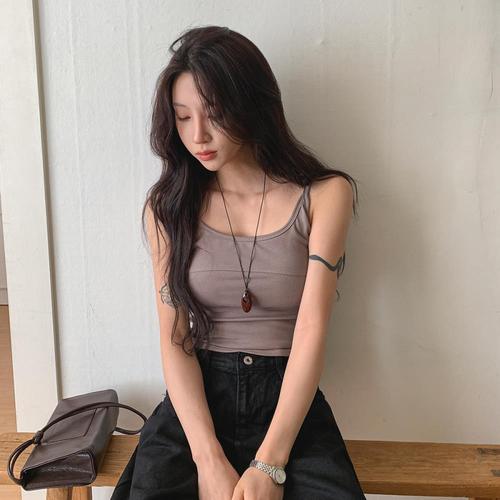 [다잇템]여자 면스판 브라탑 슬림 캡내장 끈나시