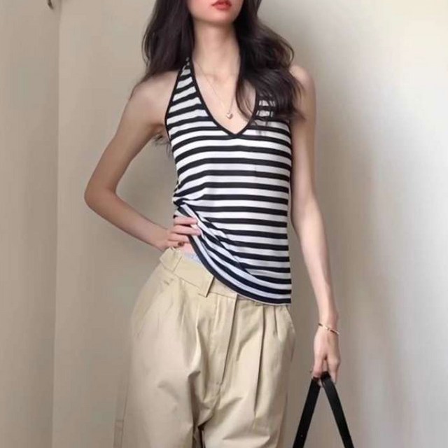 Destijl HC06 깔끔한 비즈배색 모브 라운드 5부반팔 벌집 니트티 D2621sw06