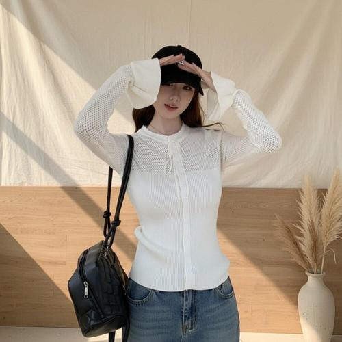 [옷자락]여성 슬림 브이넥 펀칭 프릴소매 니트 가디건