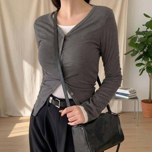 [옷자락]여성 슬림 긴팔 가디건 봄가을 간절기용