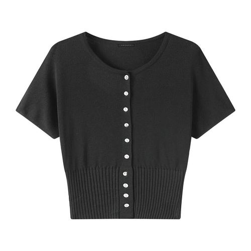 Tuularose 패션 새로운 티셔츠 여성 캐주얼 솔리드 슬림핏 크루넥 카디건 티셔츠 여름 오피스 레이디 휴가 여성 탑
