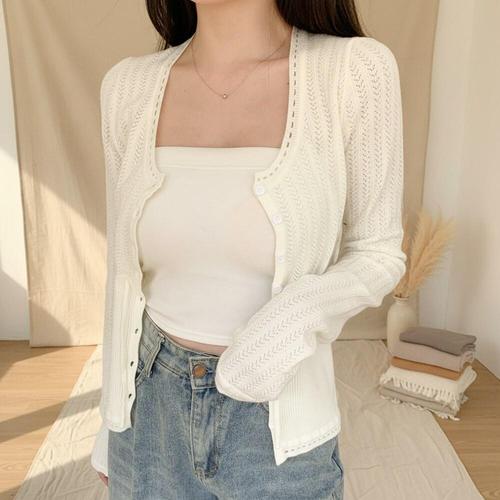 [옷자락]여성 여름 슬림핏 얇은 크롭 니트 가디건