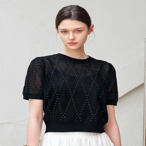 [GGPX]글리터 포인트 시스루 반팔 니트 (GQBKT007D)