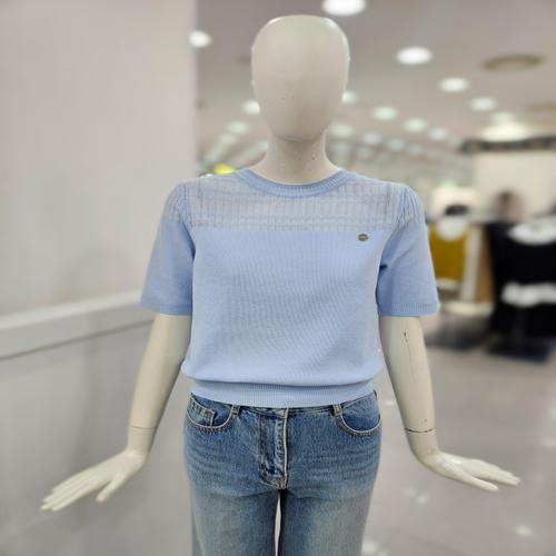 [꼼빠니아]봄여름 라운드넥 시스루 반팔 니트티셔츠AFU3WSL040NY