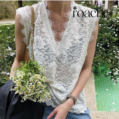 [헬렌]로아체 브이넥 플라워 자수 시스루 민소매 나시 로레스브이나시 RC-785