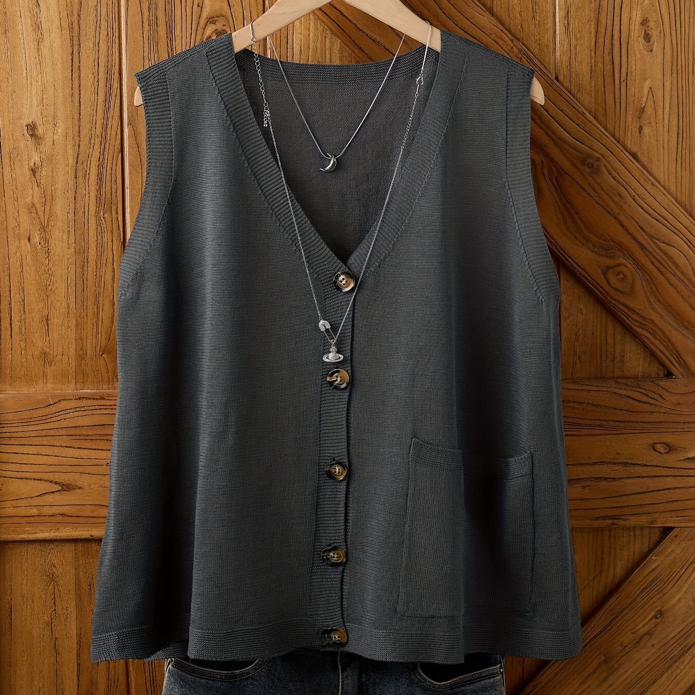 TEMU 솔리드 컬러 소프트 V넥 가디건 - 심플하고 우아한 여성용 탑