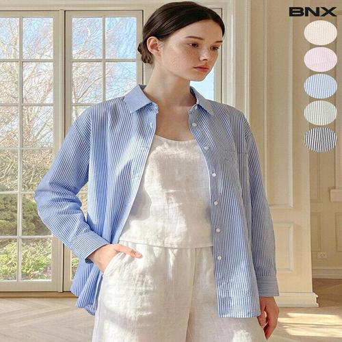 [비엔엑스]여성 시어서커 스트라이프 셔츠