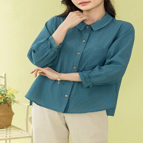 여성용 인견 셔링 블라우스 여름 시원한 7부 소매 엄마옷