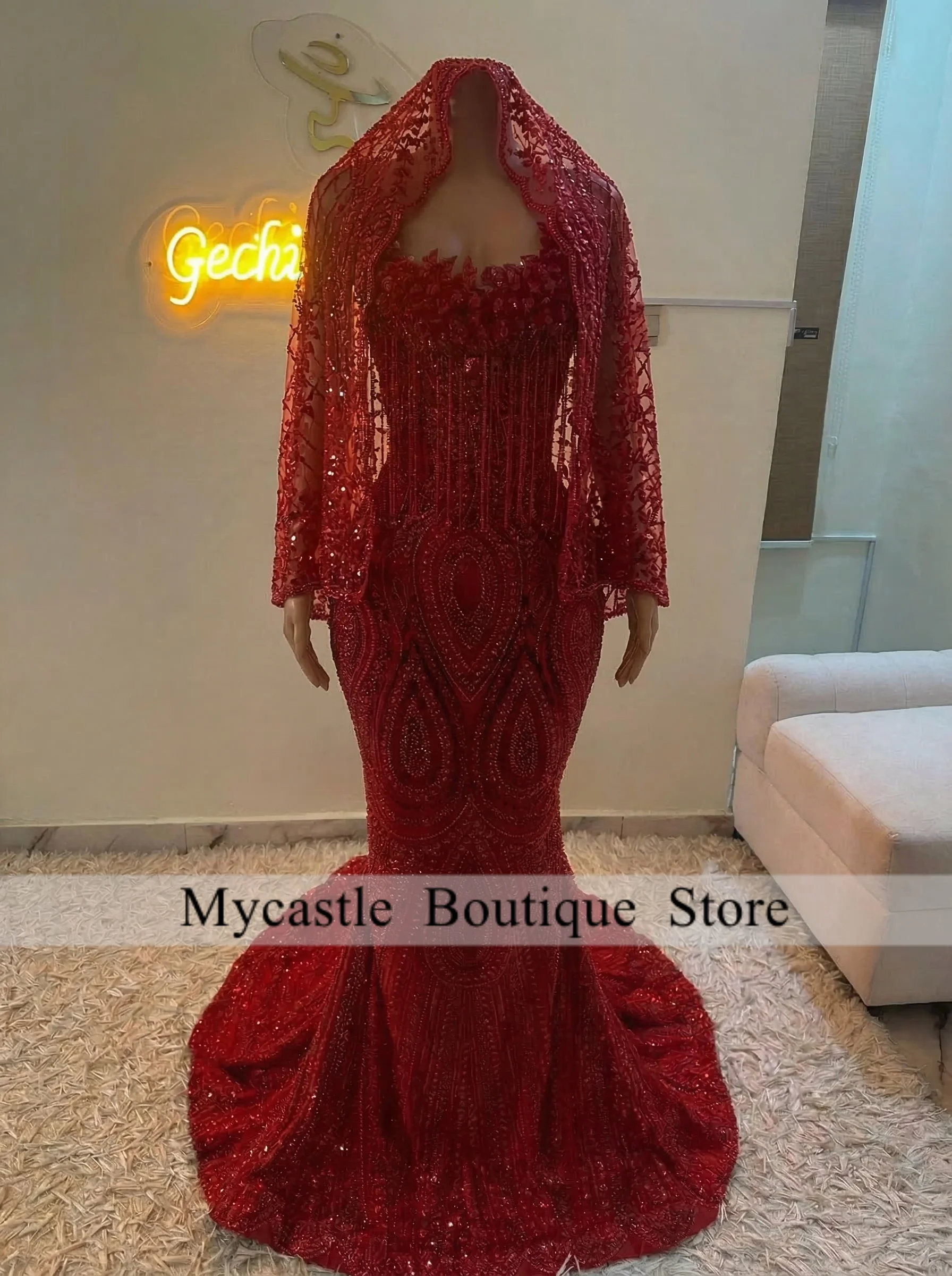 레드 다이아몬드 댄스 파티 드레스 2026 베일 바디콘 머메이드 연회 파티 가운 맞춤형 민소매 스트랩리스 베스티도 드 페스티아