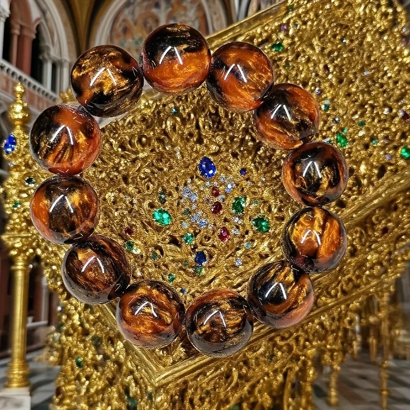 TEMU 20mm 골든 앰버 화석 비즈 팔찌 (그린 액센트) - 남녀 모두에게 적합한 고급 액세서리, 부와 행복을 상징, 발렌타인데이, 어버이날, 크리스마스 선물로 완벽, 홈 데코에도 좋습니다.