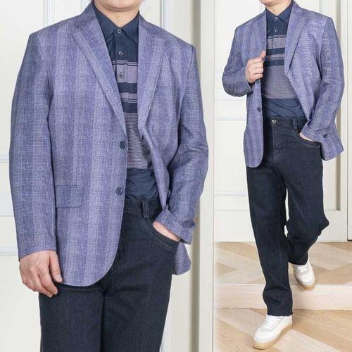 [중년의품격]고급 간절기 클래식 퍼플 체크 신사 콤비자켓 96