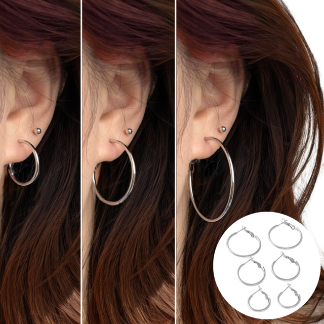 젤루나 여성용 전체 써지컬 빅사이즈 심플 링 귀걸이 25 x 2 mm P-1036