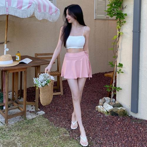 [옷자락] 여자 라운드넥 심플 나시 원피스 탑니트 세트