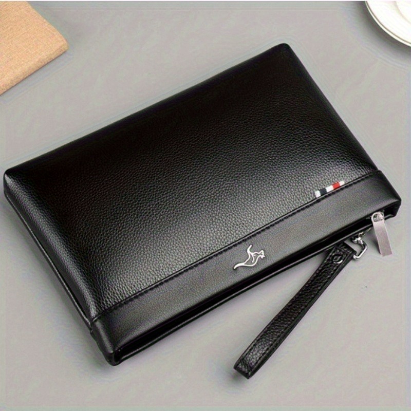 TEMU 남성용 L 사이즈 비즈니스 클러치 핸드백, 손목 스트랩 포함 - 블랙 & 지퍼, 사무실, 통근용, 우아한 손목 스트랩 부착, 데일리용 휴대 가방, 통근용 스타일리시 액세서리