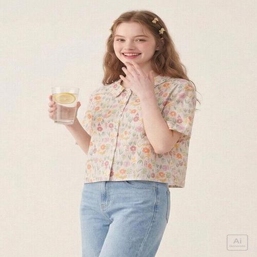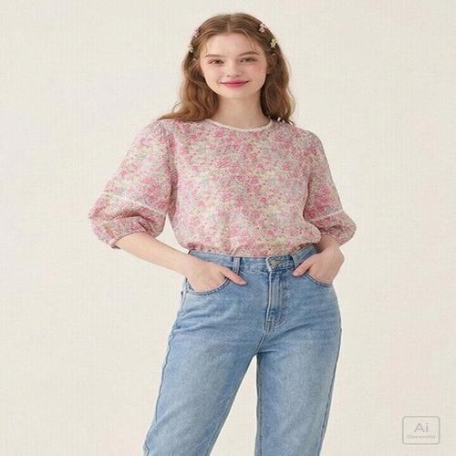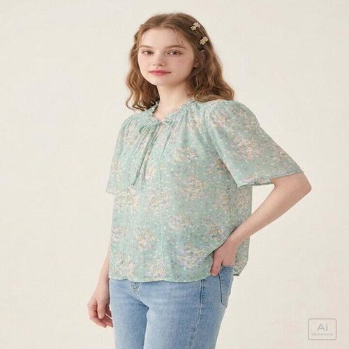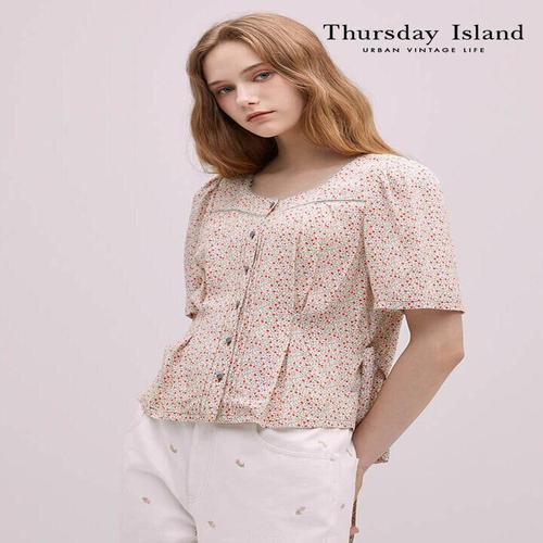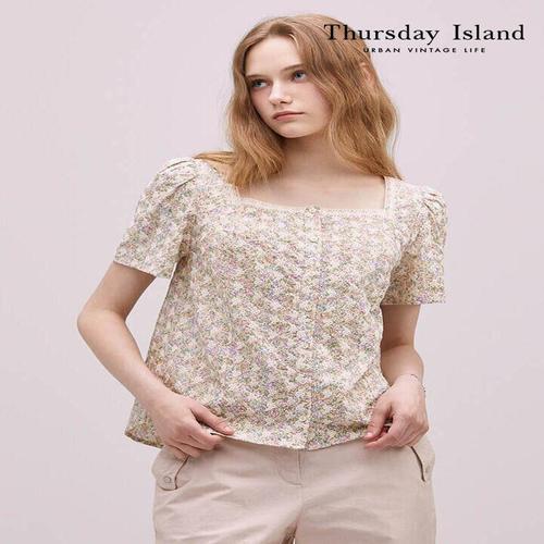 [매장발송]써스데이아일랜드 여성 스퀘어넥 플라워 블라우스 꽃무늬 여름 캐주얼 하늘하늘 휴가