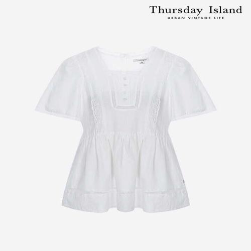 [써스데이아일랜드][Thursday Island] 레이스 스퀘어넥 패턴 블라우스(T244MBL242W)