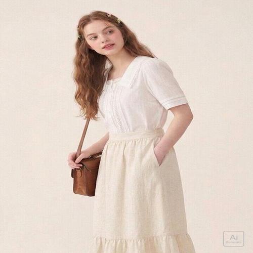 [써스데이아일랜드][Thursday Island] 프릴 스퀘어 네크 블라우스(T244MBL262W)