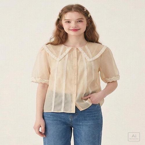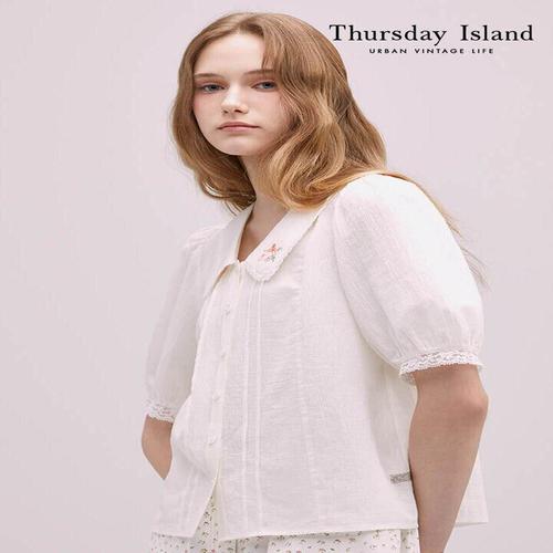[써스데이아일랜드][Thursday Island] 레이스패치 카라 블라우스(T244MBL233W)