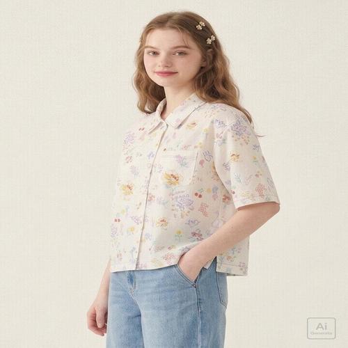 [써스데이아일랜드][Thursday Island] 플라워 패턴 풀오픈 블라우스(T244MBL632W)