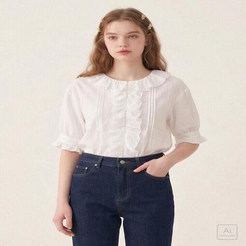 [써스데이아일랜드][Thursday Island] 프릴 네크 셔링 블라우스(T244MBL249W)