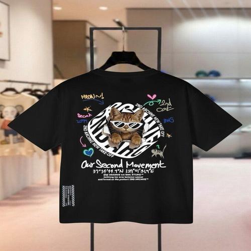 [피클]오버핏 써클 고양이 백프린링 반팔 티셔츠