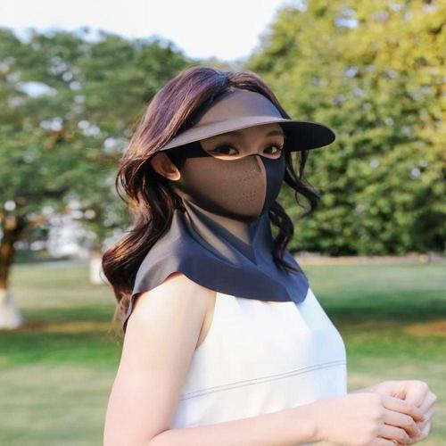 상덕 자외선 차단 썬캡 마스크 일체형 여성 여름 햇빛 가림 넓은 챙 쿨링 얼굴 가리개