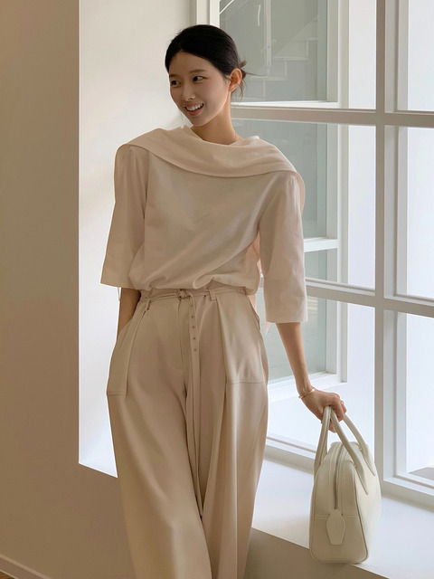 [씨씨콜렉트] 코튼 터틀넥 타이 스트랩 블라우스 IV_C262MSC707