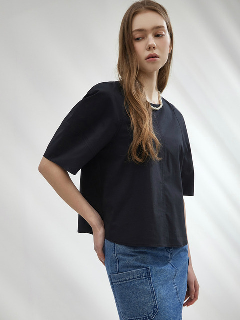 [씨씨콜렉트] 볼륨 하프슬리브 블라우스 BK_C262MSC706