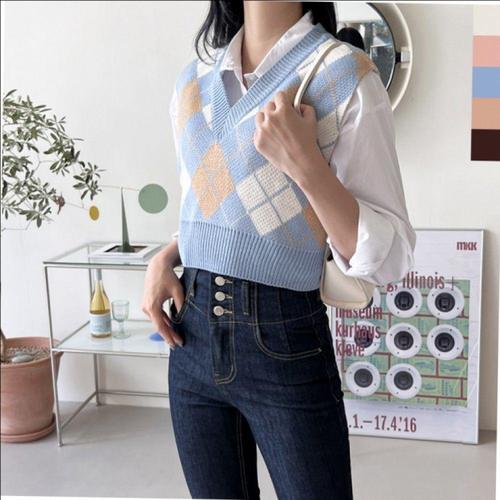 [오너클랜]인기상품 여성 아가일 무늬 니트 조끼 봄 가을 니트 데일리 레이어드용 [WFLLA2K_260304]