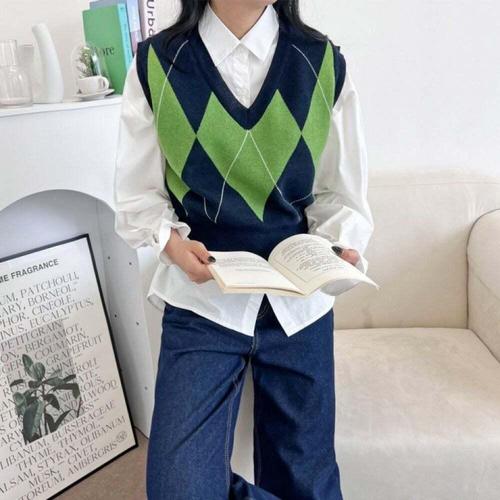 [오너클랜]인기상품 여성용 브이넥 아가일 패턴 니트 조끼 캐주얼 데일리 [WFLKYZ7_260304]