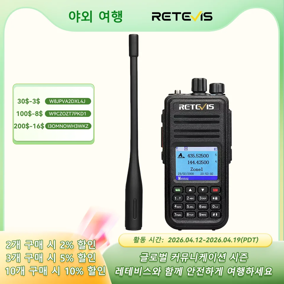 Retevis RT3S DMR 전문가용 워키토키 무전기세트 장거리 무전기 디지털 워키토키 햄 주파수 복사 기기 아마추어무전기 장거리 무전기 한국 고성능라디오 송수신기 자전거용 라디오 UHF VHF 지원 GPS APRS 기능