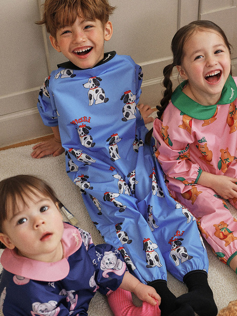 [마티앙쥬] 마티앙쥬 아기 유아 방수 전신 미술가운_블루 달마시안