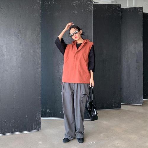 [삐까삐까]루즈핏 바람막이 아노락 포켓 스트링 집업 후드 조끼 베스트