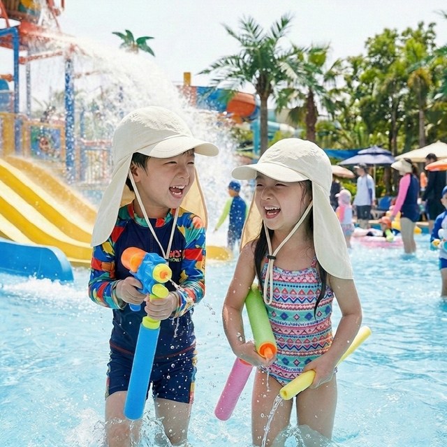 아동용 플랩캡 UV 비치모자 물놀이모자 키즈 아쿠아 플랩캡