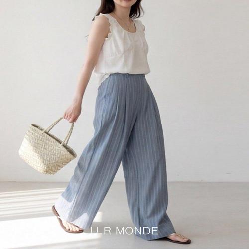[유아몽드]핀스트라이프 핀턱 와이드 슬랙스 하이웨이스트 롱기