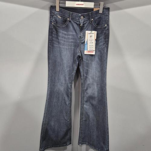 [잠뱅이]여성)쿨맥스 미디엄 인디고 밴드 금속장식 긴기장 부츠컷핏 데님팬츠/AQ1DNE159_US