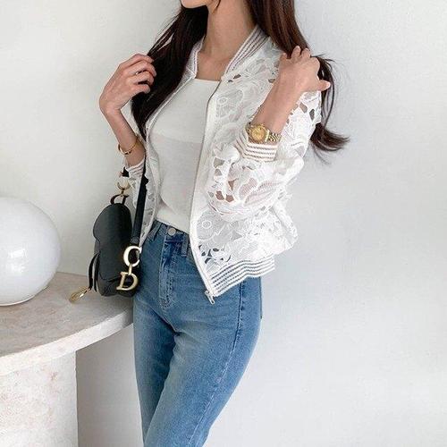 [핑크엘리제]레이스 시스루소매 야구잠바 지파넨점퍼