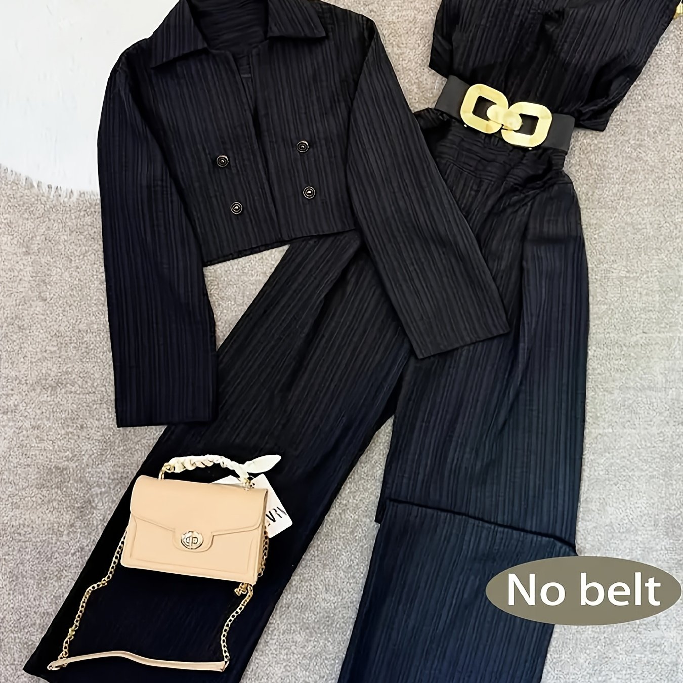 TEMU 벨트 없는 여성용 재킷 & 와이드 레그 점프수트 세트. 루즈하고 스타일리시한 디자인으로 우아한 여성에게 완벽합니다. 모델: NS702