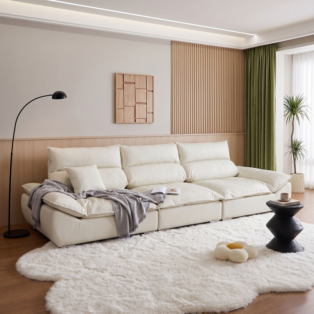 [오늘의집 단독] 시선의 동백 2140 모듈형 가죽 소파 쇼파 3인 (미니쿠션 증정)