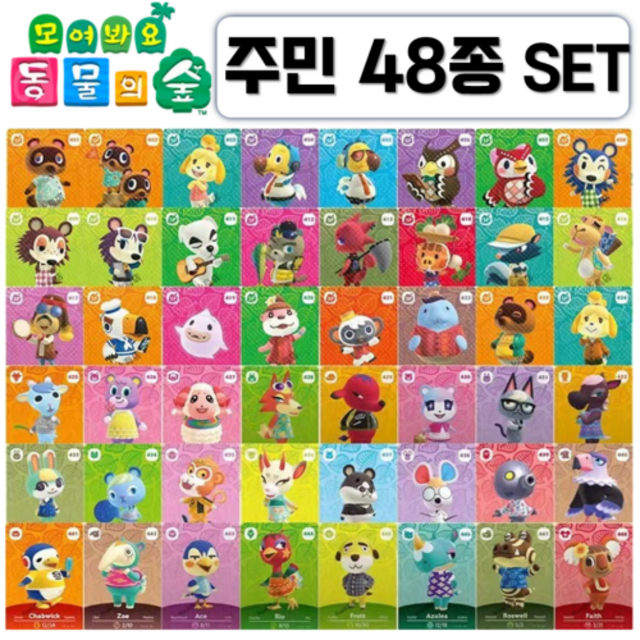 2026년 한글판 신캐릭 추가 동숲 52장세트 모여봐요 동물의숲 아미보 카드 5탄 올클+신상 4종 인기 주민 모동숲 스위치 사이다 게임 칩