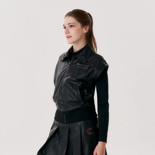 [까스텔바작]여성 블랙라인 볼륨자수 레더 베스트 BGEWVT801BK_DG