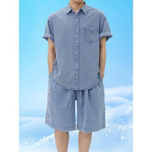 [빌리버스]남성 아이스 반팔 데님셔츠 청남방 청바지 워싱 데님팬츠 셋업 BYHT008