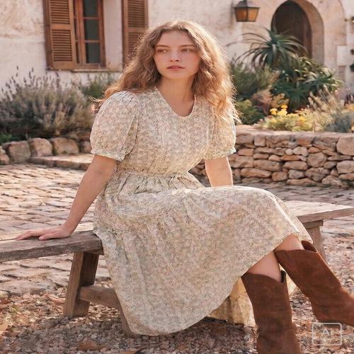 UPPERCUT 여성 로맨틱 프릴 소매 아일렛 자수 펀칭 원피스 휴양지룩 데이트룩