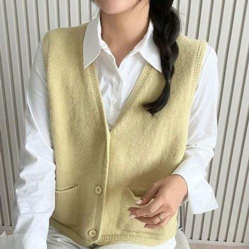 [신상오픈런]여성용 박시핏 라운드넥 니트조끼 옆단추 무지 커버업