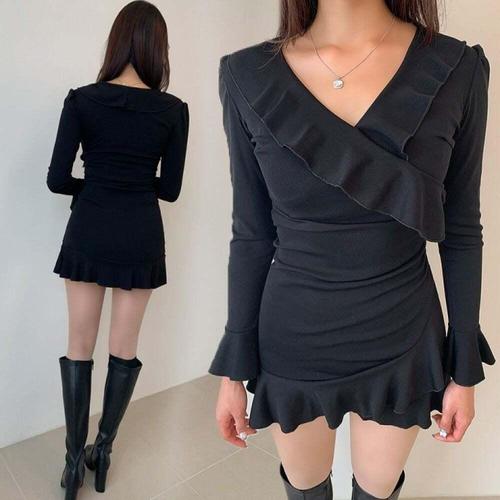 [오너클랜]인기상품 셔링 미니 프릴 긴팔 슬림핏 무지 원피스 이너웨어 [WFLHRVJ_260208]